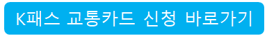 - K패스 교통카드를 신청하시면 월 15회 이상 대중교통을 이용한 비용의 일부를 환급받으실 수 있습니다.